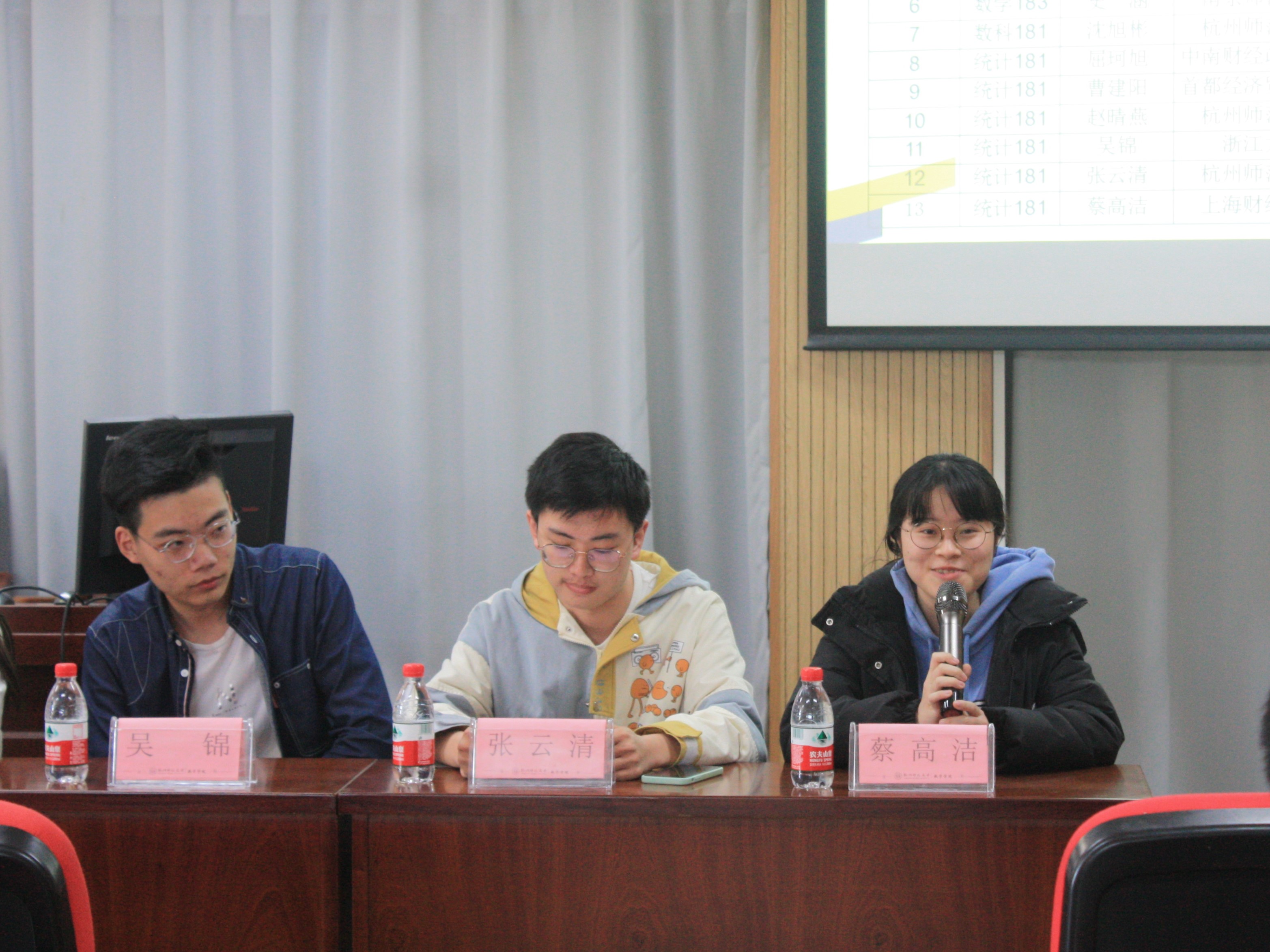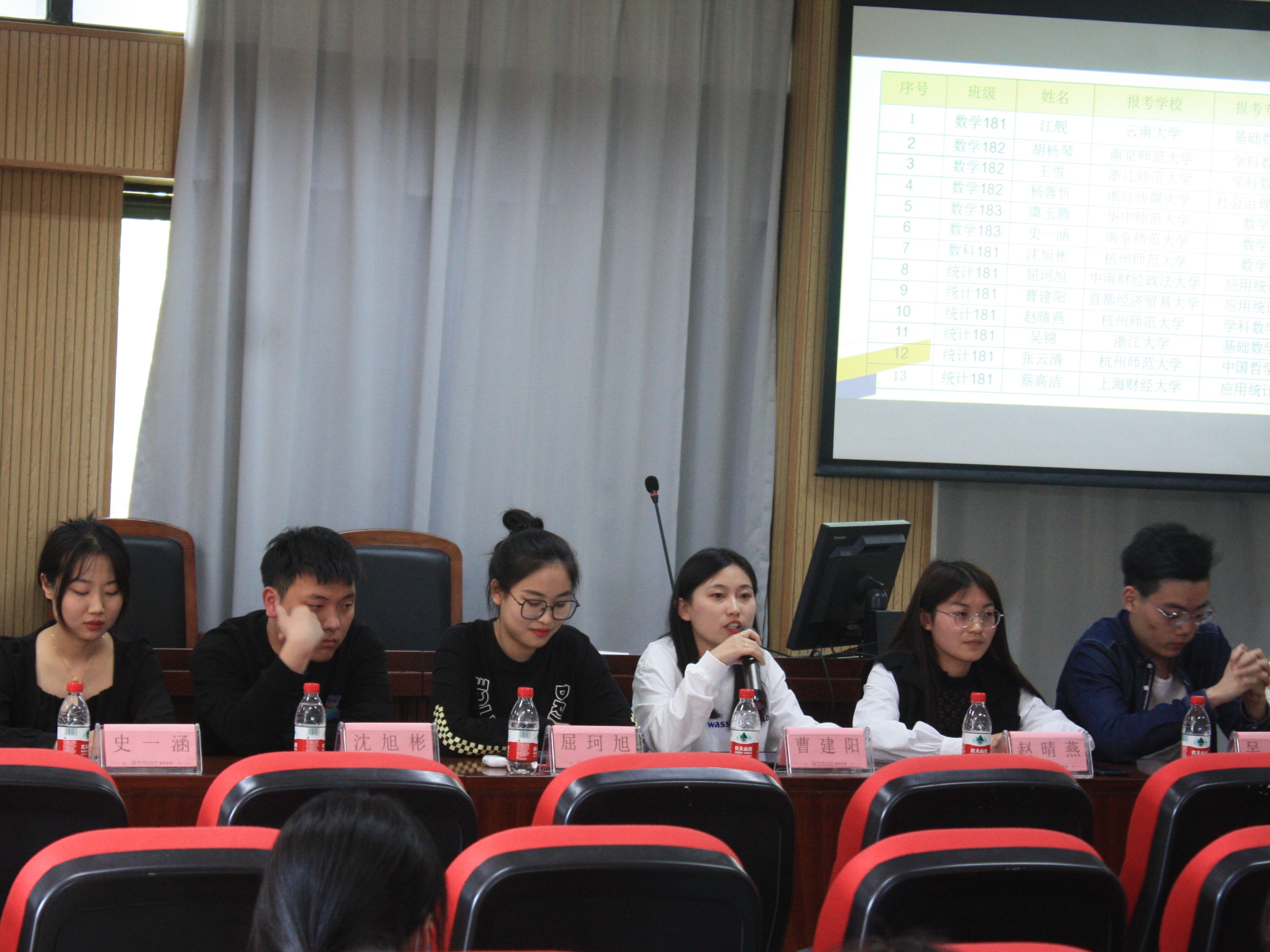 4月9日下午,欧美av在线 举行考研分享交流会,已被拟录取的蔡高洁、张云清、吴锦、赵晴燕、曹建阳、虞玉腾、史一涵、屈珂旭、沈旭彬、杨蓉忻、王雪、胡杨琴、江舰同学和2019级的部分学生代表同共参加了活动。