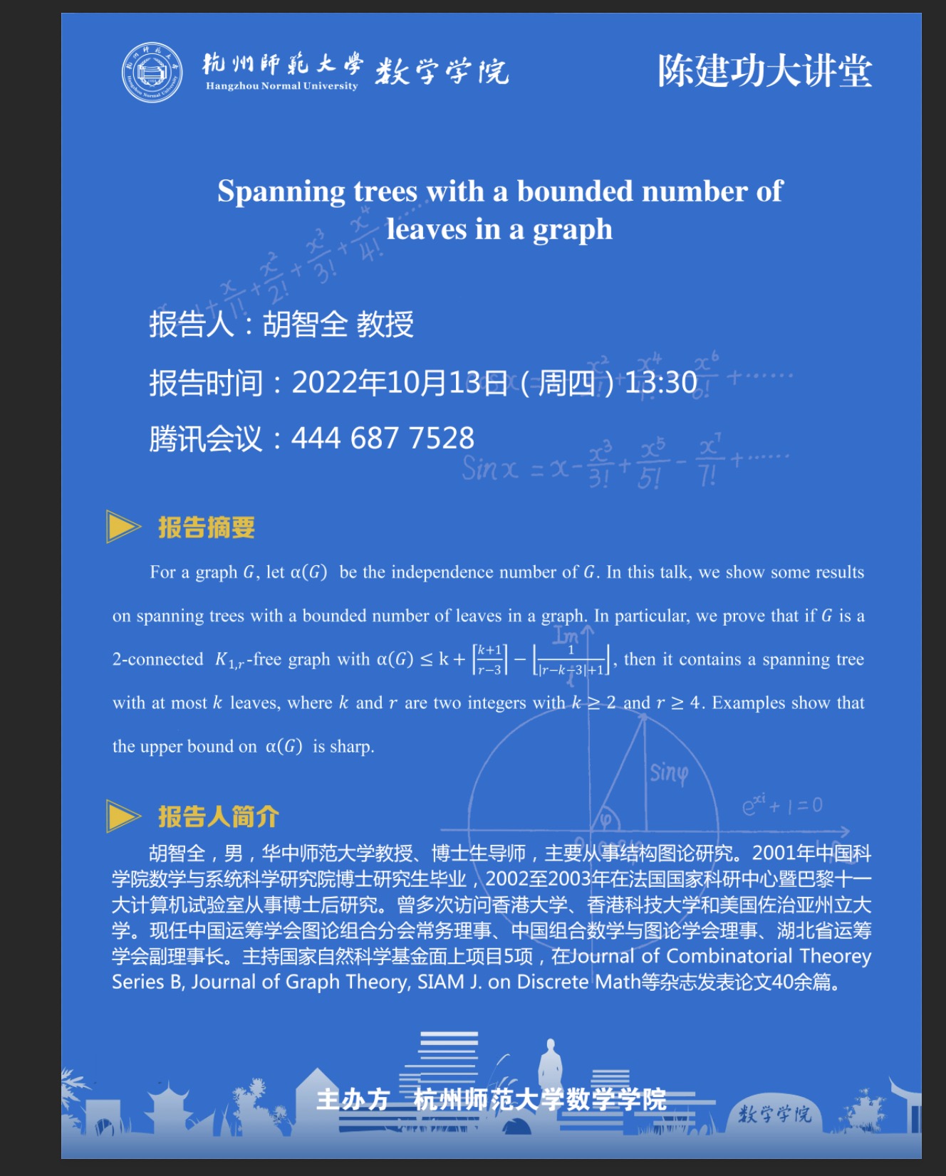 陈建功大讲堂:Spanningtreeswithaboundednumberofleavesinagraph