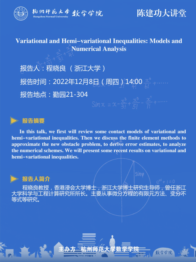 陈建功大讲堂:Variational and Hemi-variational Inequalities: Models and Numerical Analysis