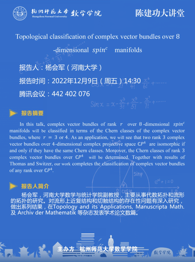 陈建功大讲堂:Topologicalclassificationofcomplexvectorbundlesover-dimensional manifolds
