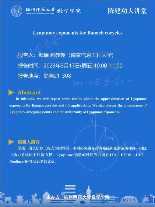 陈建功大讲堂:Lyapunov exponents for Banach cocycles