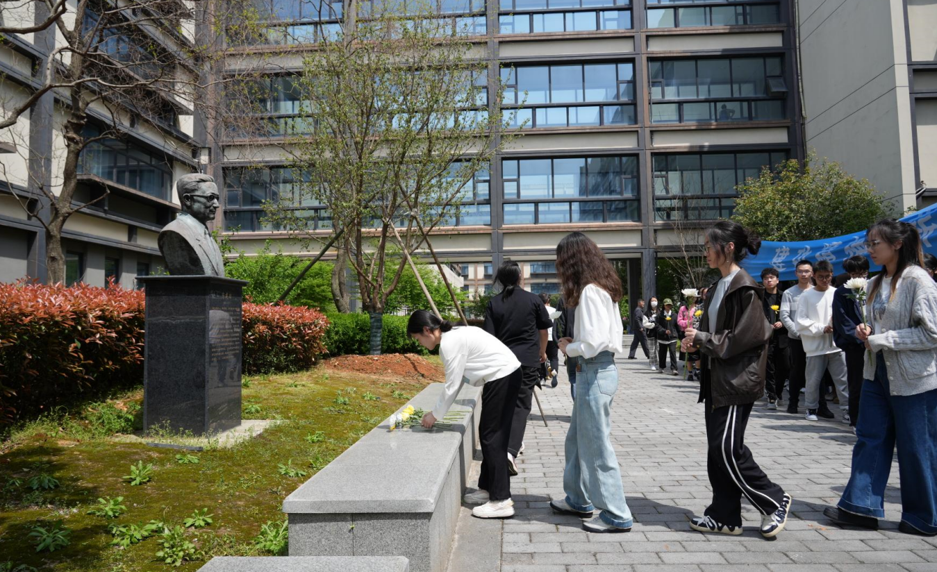 学院党委书记徐金芳在陈建功先生塑像前讲话,他说,我们追忆陈先生科学报国的一生,追忆他的才华、他的品格、他的贡献,追忆他对弟子们的言传身教、行为示范,追忆他对我们长久的、深刻的影响。我们应该做的,是抱着积极的心态和厚重的责任感,传承和弘扬陈先生的精神。希望老师们、同学们不管走多远,都像陈先生一样,以成为民族脊梁为己任,终生铭记这份精神、践行这份精神,使其与时俱进、薪火相传。